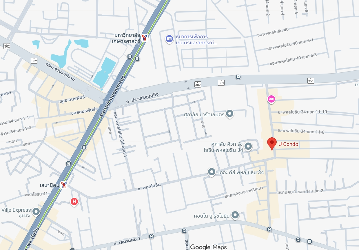 รวมคอนโด ซื้อ ขาย ให้เช่า U Condo @ Yak Kaset (ยู คอนโด แอท แยกเกษตร) ที่อยู่ ซ. พหลโยธิน 34 แยก 11-10 แขวงเสนานิคม เขตจตุจักร กรุงเทพมหานคร คอนโดใกล้รถไฟฟ้า BTS เสนานิคม ใกล้ มหาวิทยาลัยเกษตรศาสตร์